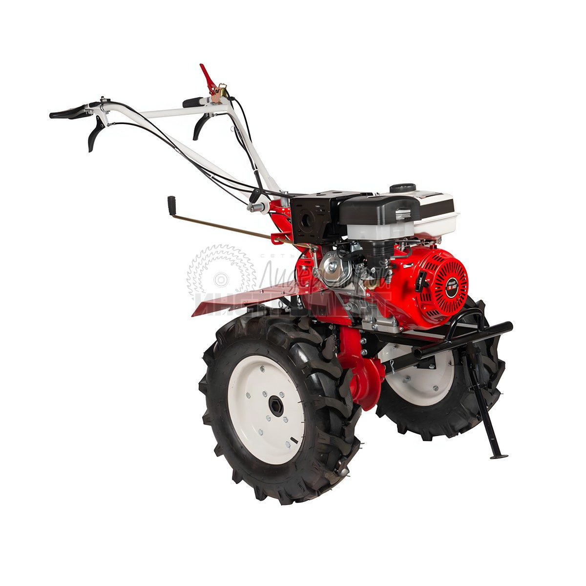 Комплектуется бензиновым двигателем мощностью 7 л.с. Запуск мотора осуществляется вручную.