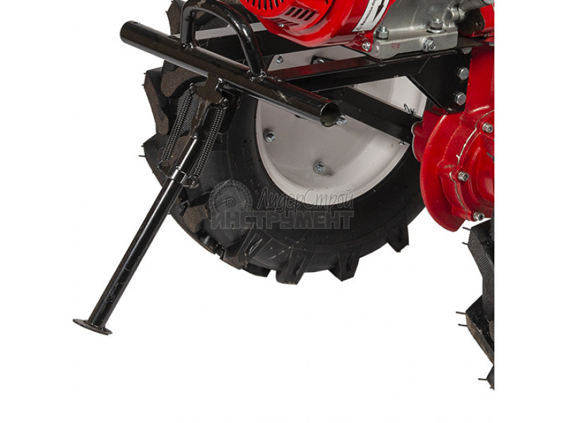 - Колесо в передней части мотокультиватора для удобства перемещения либо стояночная опора (сошник) в задней для удобства хранения.