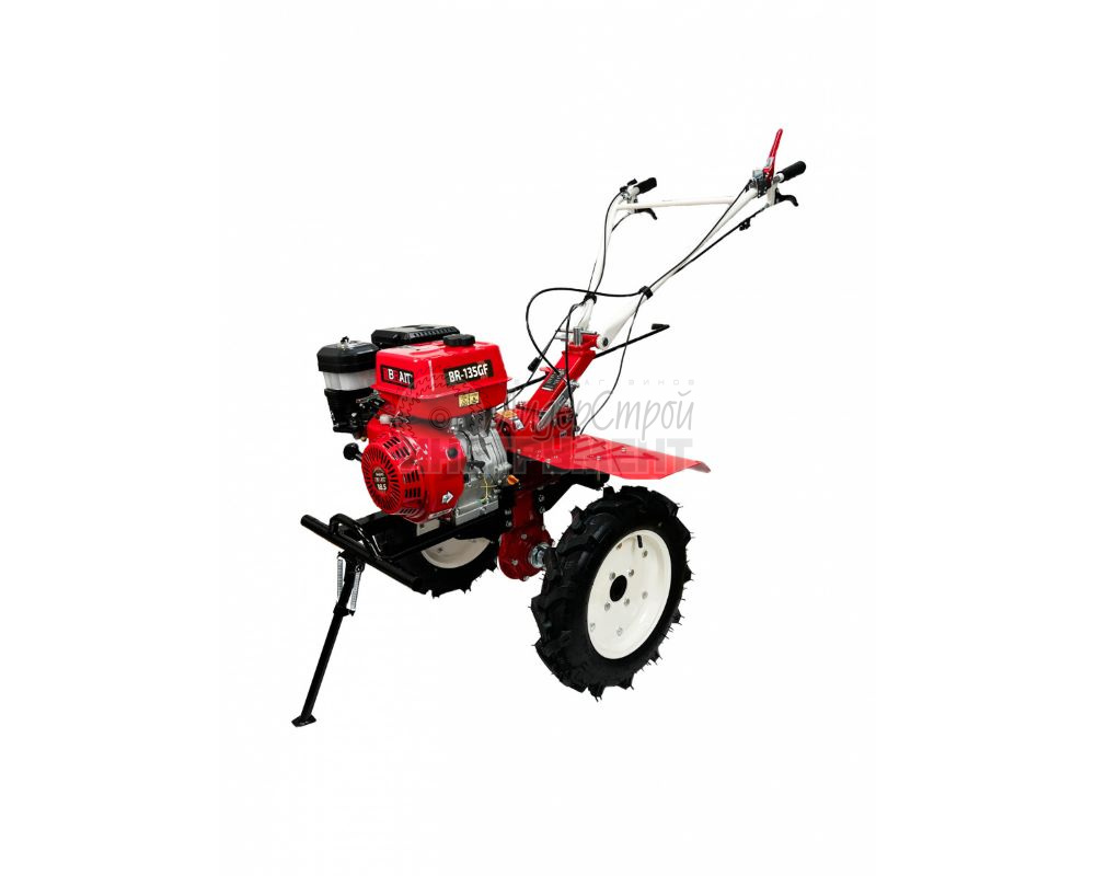Бензиновый мотоблок BRAIT BR-135GF предназначен для обработки целинных земель большой площади. Имеет возможность использовать навесное оборудование: тележку, плуг, окучник и картофелевыкапыватель. Оборудован мощным 4-х тактным двигателем, прочными фрезами и сошником для регулировки глубины культивации. Скорость движения регулируется. Большие пневматические колеса обеспечивают отличную проходимость и позволяют маневрировать на разных рельефах местности. Ширина вспашки 800-1200 мм.