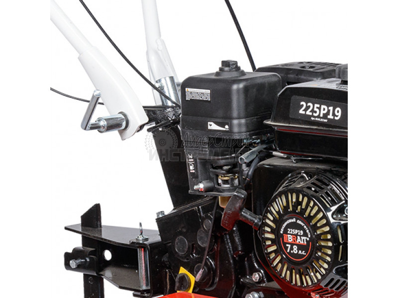 На мотоблоке установлен двигатель повышенной мощности, 7.8 л.с., обеспечивая большие тяговые усилия при езде и работе по земле.