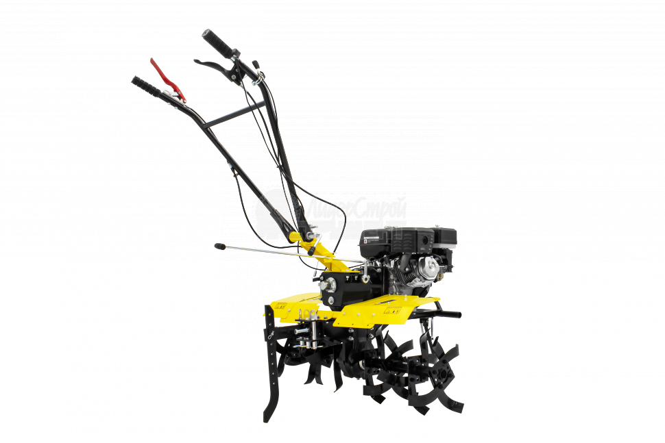 Комплектуется бензиновым двигателем мощностью 7 л.с. Запуск мотора осуществляется вручную.