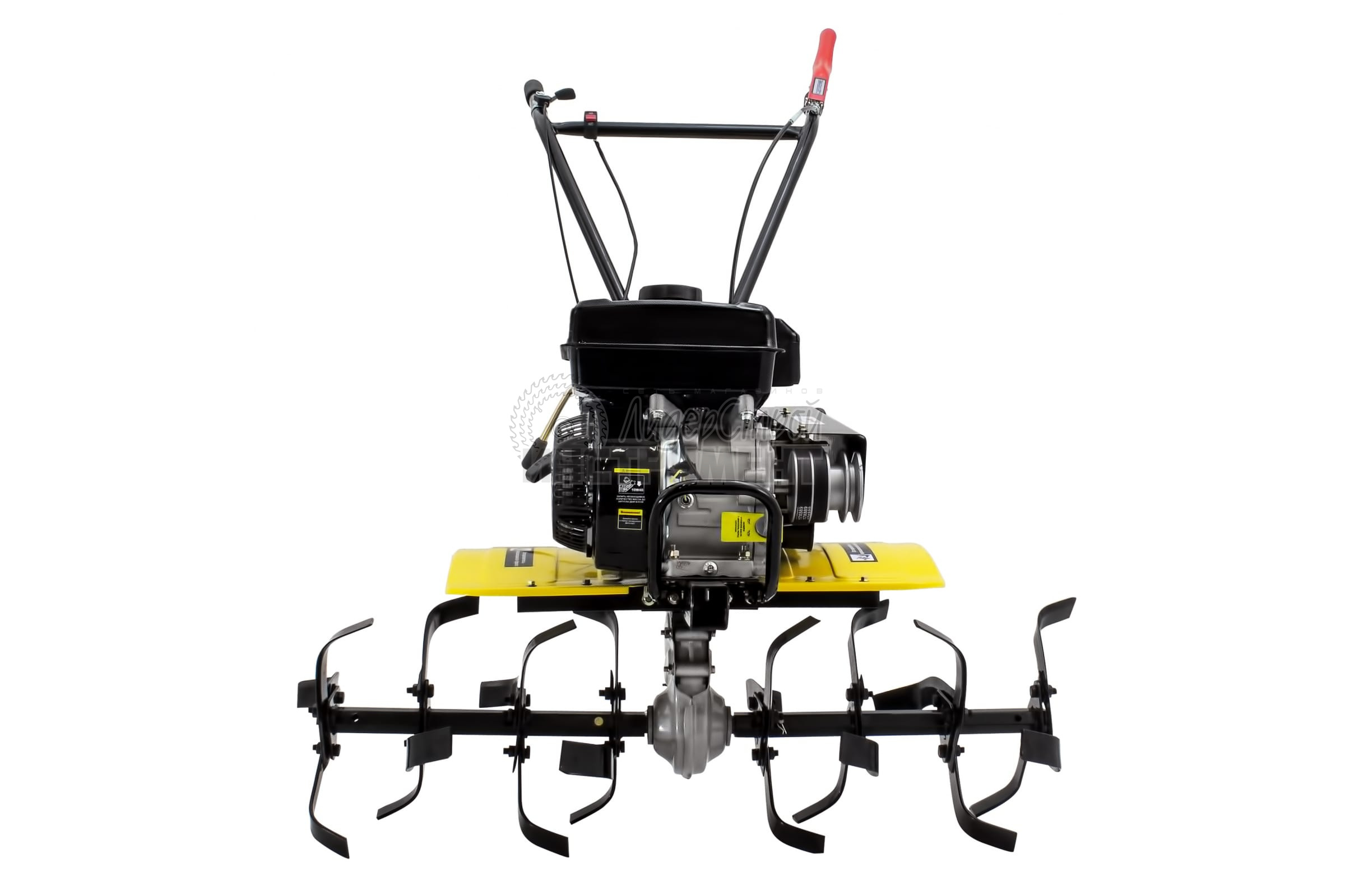Комплектуется бензиновым двигателем мощностью 7 л.с. Запуск мотора осуществляется вручную.