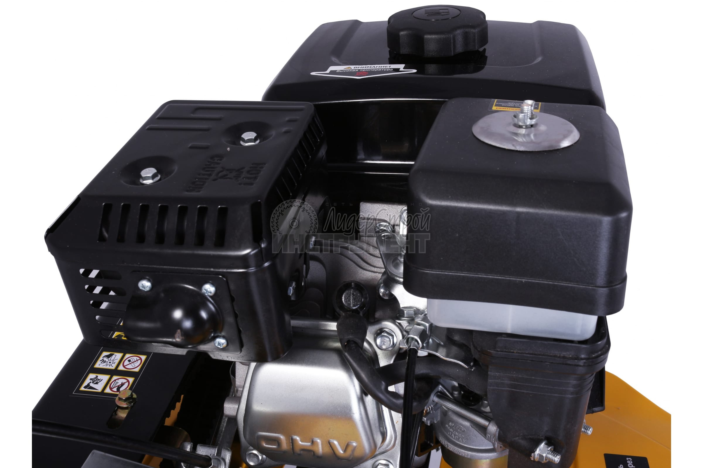 Комплектуется бензиновым двигателем мощностью 7 л.с. Запуск мотора осуществляется вручную.
