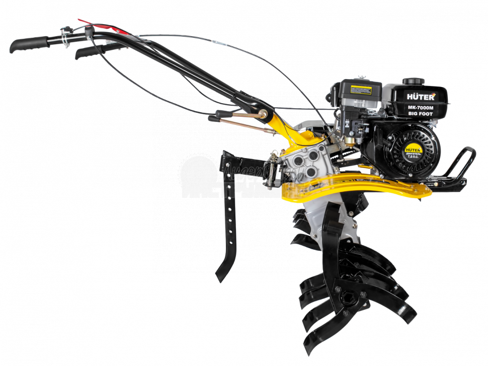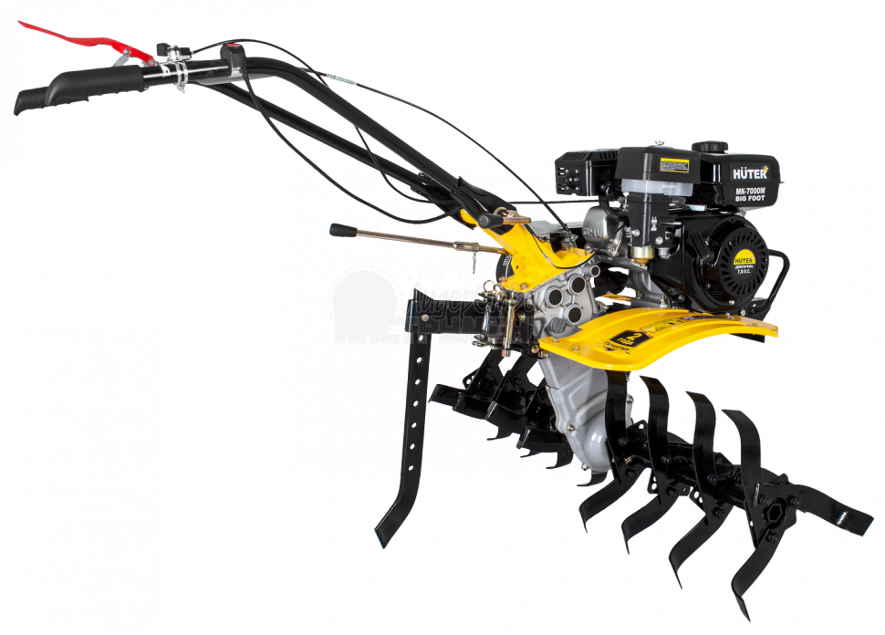 HUTER MK-7000M BIG FOOT используется для обработки почвы методом культивации, то есть её рыхления без переворота почвы, выравнивания, других операций. Агрегат дает хорошие результаты на приусадебных и фермерских хозяйствах и дачных участках, на ограниченных территориях, междурядьях, на клумбах и возле деревьев. Мотокультиватор укомплектован четырёхтактным двигателем внутреннего сгорания.