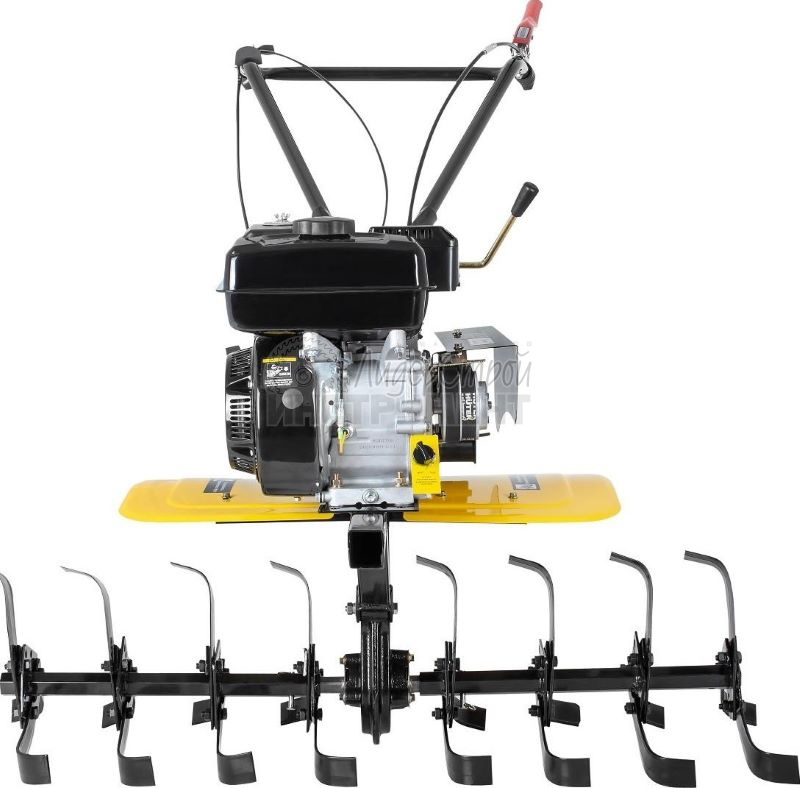 Комплектуется бензиновым двигателем мощностью 7 л.с. Запуск мотора осуществляется вручную.