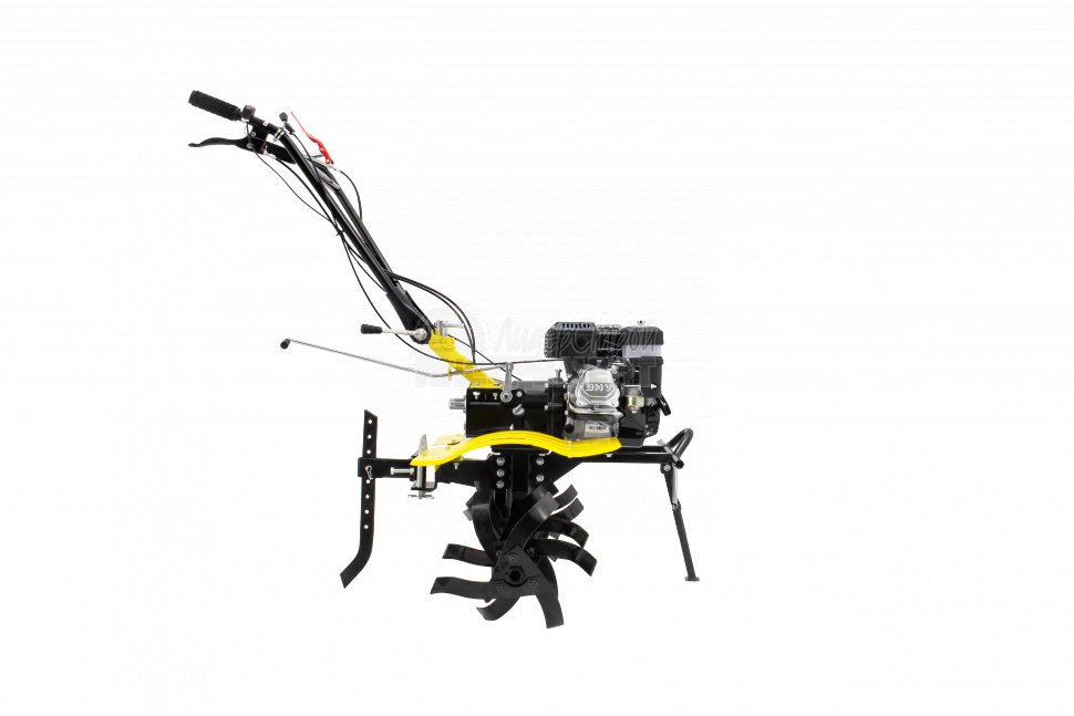 Комплектуется бензиновым двигателем мощностью 7 л.с. Запуск мотора осуществляется вручную.