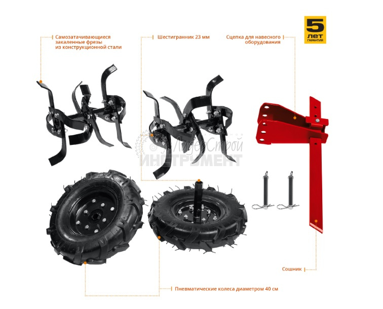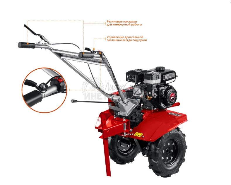 Конструкция мотоблока позволяет использовать его с различными навесными оборудованием