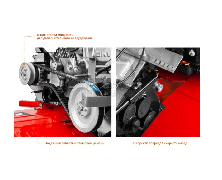 Клиновидный зубчатый ремень в приводе культиватора обладает повышенной износостойкостью по сравнению с обычными ремнями
