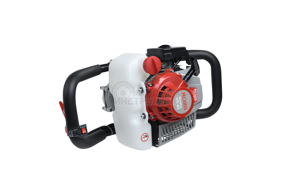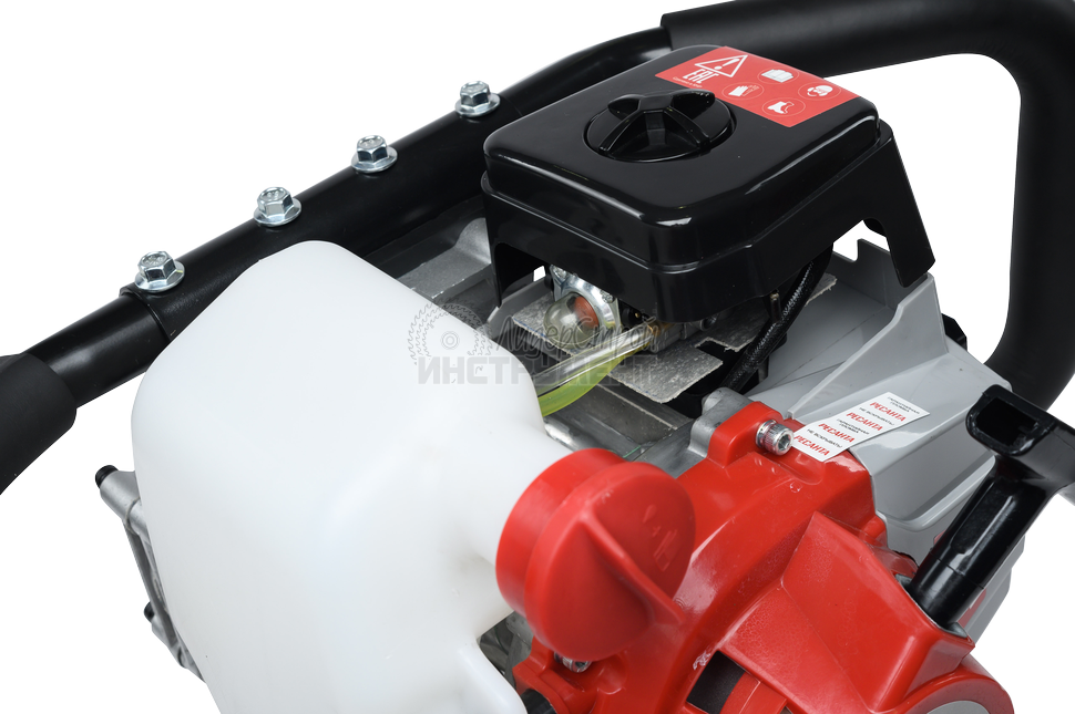 Двухтактный бензиновый двигатель мощностью 2,5 л.с. и объемом 52 см3, топливным баком вместительностью 1,2 л обеспечивают длительную непрерывную работу.