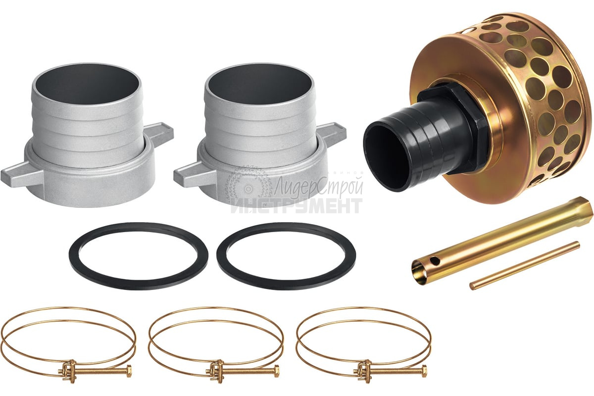 - Металлические патрубки для присоединения шлангов входят в комплект
