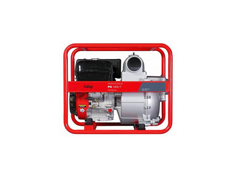 PG 1800T — самовсасывающая , работающая на бензине. Используется для перекачивания грязных жидкостей, предназначена для сложных условий работы. Осушает подвалы, траншеи, котлованы, подвалы и другие объекты. Работает на двигателе Fubag мощностью 13 л. с., который поднимает жидкость на высоту до 26 м с глубины до 8 м.