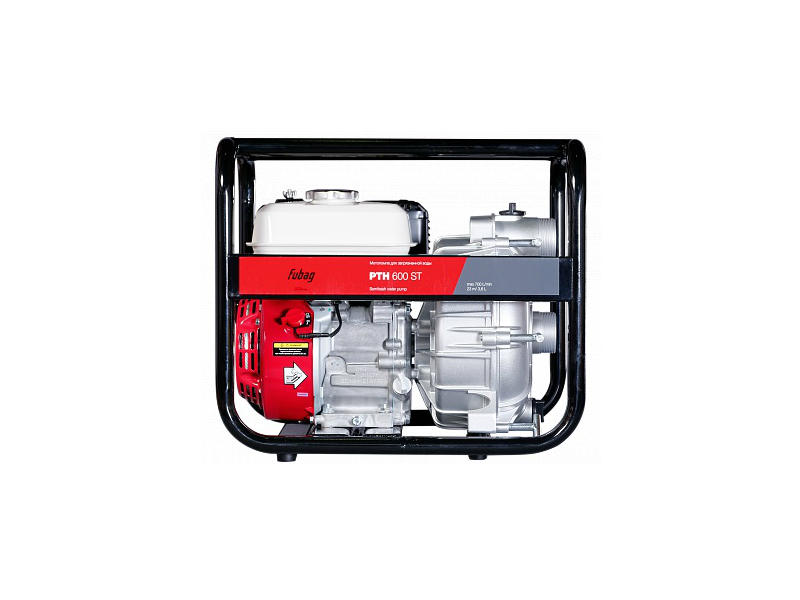 PG 1600 — самовсасывающая помпа для откачивания и подачи чистой воды. Осушает подвалы, траншеи, пруды, бассейны, подвалы и другие объекты. Работает на двигателе собственного производства Fubag мощностью 10,3 л. с., который поднимает жидкость на высоту до 18 м с глубины до 8 м.