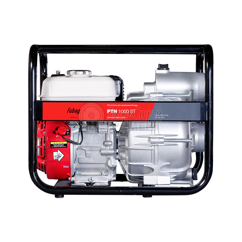 PG 1000 — самовсасывающая бензиновая помпа для перекачки чистой воды. Осушает подвалы, траншеи, бассейны, пруды, подвалы и другие объекты. Оборудована двигателем Fubag мощностью 5,7 л. с., который поднимает жидкость на высоту до 28 м с глубины до 8 м.