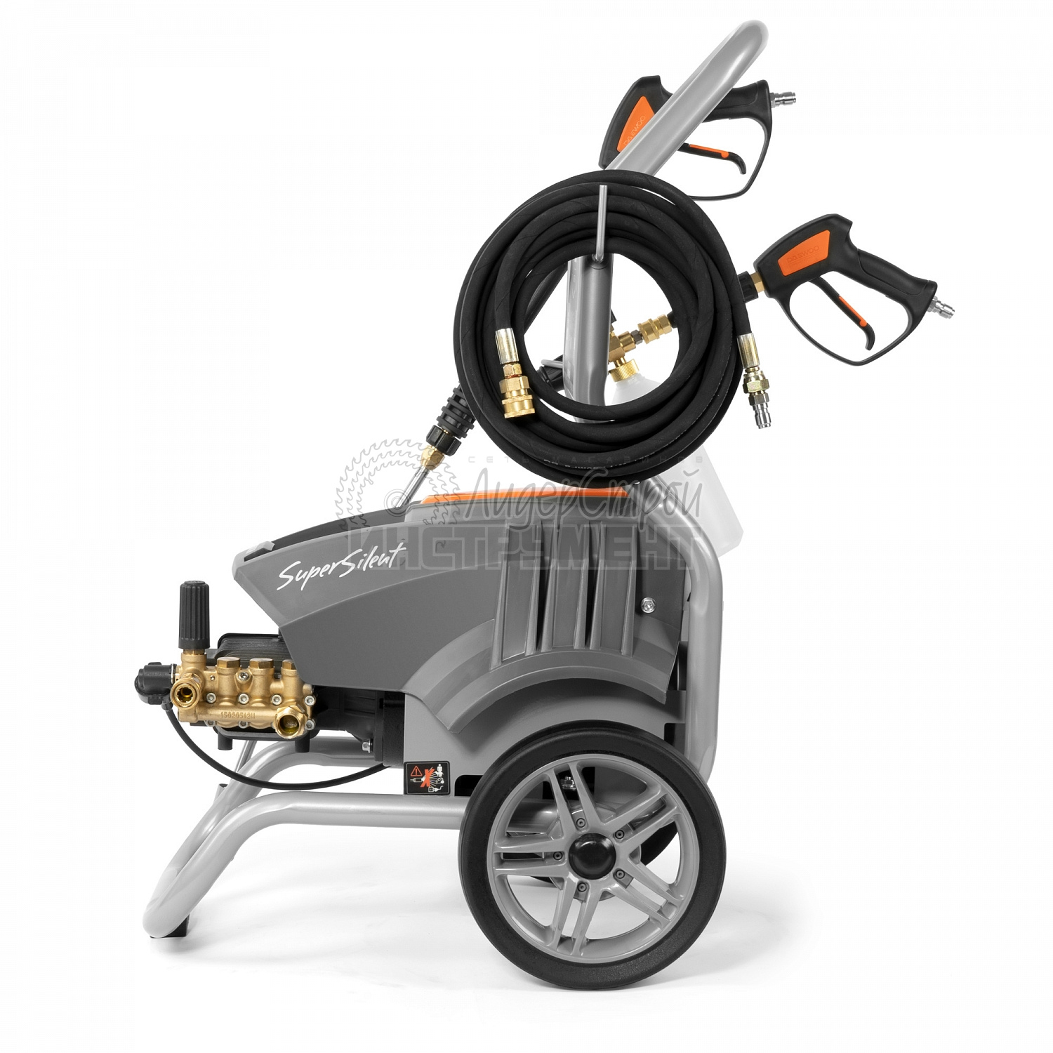 - Система автоматики «TOTAL STOP» включает и останавливает электродвигатель, когда нажимается или отпускается рычаг на ручке пистолета, данная система продлевает срок службы помпы и всех узлов, находящихся под высоким давлением