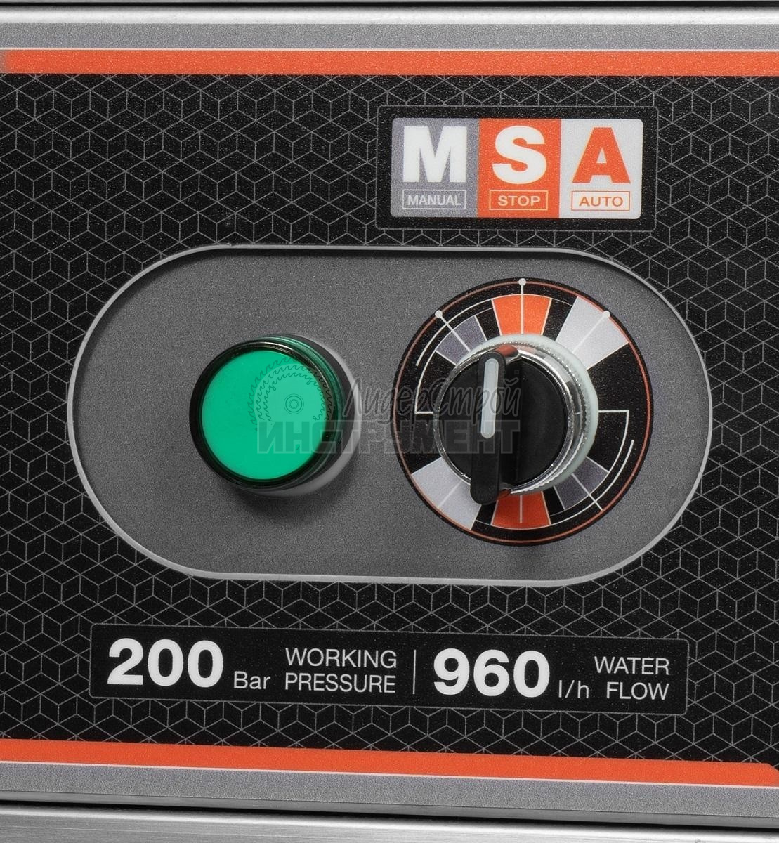- Два режима работы: Автоматический режим. Система автоматики «TOTAL STOP» включает и останавливает электродвигатель, когда нажимается или отпускается рычаг на ручке пистолета. Данная система продлевает срок службы помпы и всех узлов, находящихся под высоким давлением. Ручной режим. Работа насоса происходит в режиме BY-PASS. При отпускании рукоятки пистолета, электродвигатель продолжает работать, создавая максимальное давление в системе.