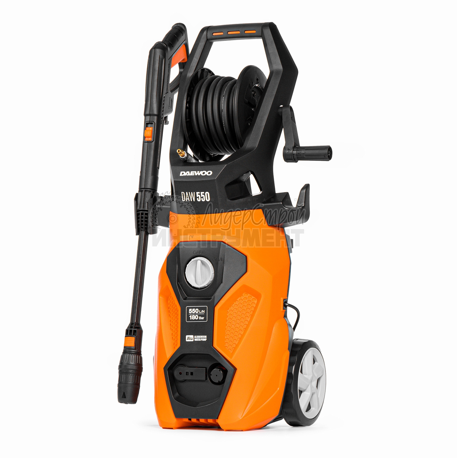 Барабан для хранения шланга способствует комфортной эксплуатации.