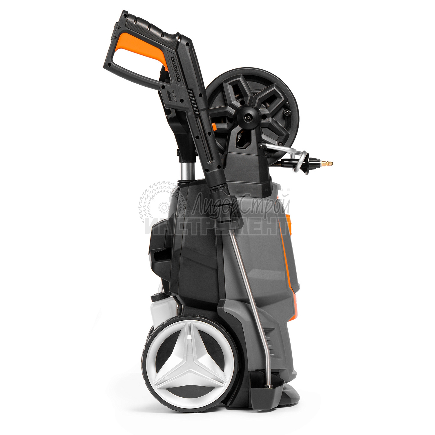 Барабан для хранения шланга способствует комфортной эксплуатации.