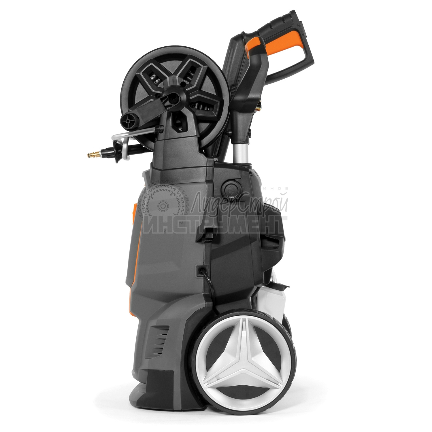 - Барабан для шланга позволяет аккуратно хранить 8 метров шланга