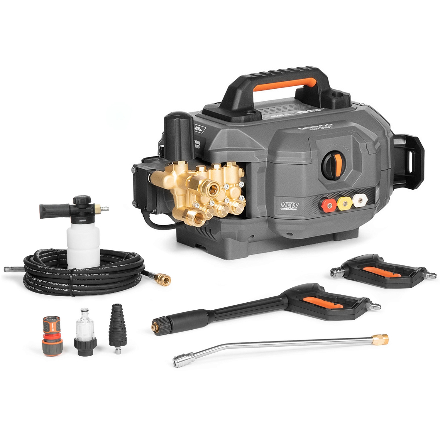 Мойка высокого давления Daewoo DAW 800 S предназначена для очистки различных поверхностей, таких как легковые автомобили, грузовики, фургоны, садовые дорожки и фасады зданий. Она оснащена мощным двигателем (3,2 кВт), имеет производительность 700 литров в час и максимальное рабочее давление 200 бар. В комплект входят грязевая фреза, пеногенератор и пескоструйная насадка
