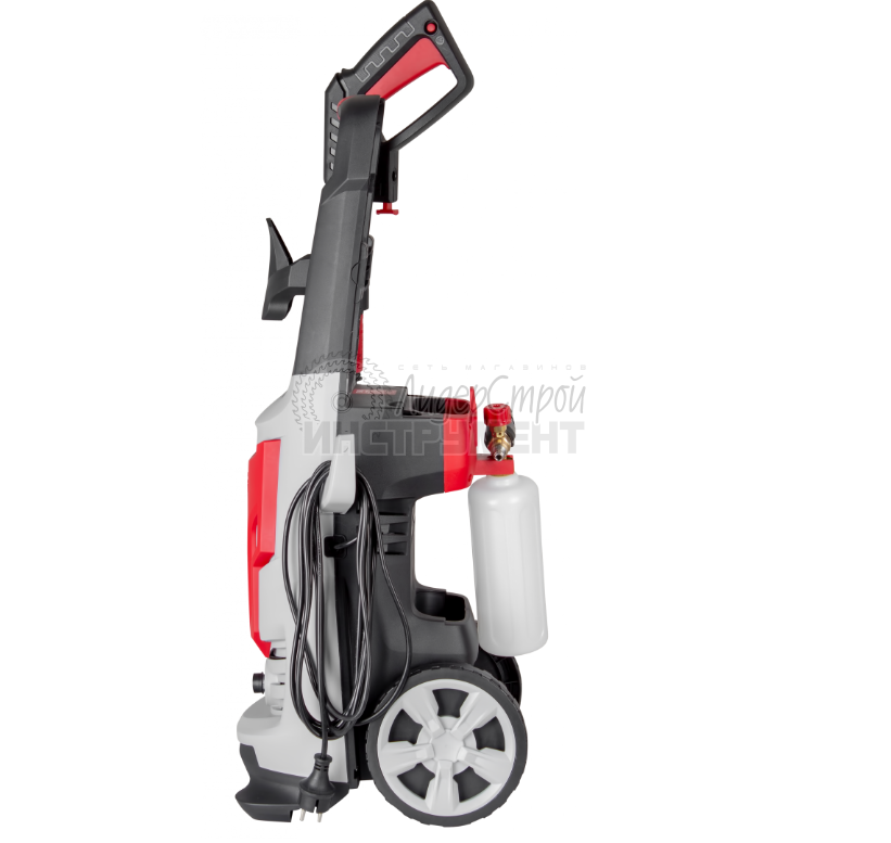 Оборудование оснащено электрическим двигателем мощностью 1400 Вт, обеспечивающим продолжительную работу при выполнении любых задач. Благодаря высокому давлению воды устройство легко справляется с чисткой в труднодоступных местах. Благодаря высокой производительности и долгому сроку службы агрегат подходит для регулярного использования. Наличие двойной изоляции обеспечивает безопасную работу. Низкий уровень шума, компактные размеры и малый вес (5,3 кг) способствуют простой эксплуатации. Удобное хранение и транспортировку обеспечивают держатели для шнура и эргономичная рукоятка. Поставляется в комплекте с емкостью для моющего средства, распылительным пистолетом и пятиметровым шлангом.