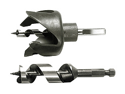 Перовые сверла изготовлены из углеродистой стали. Твердость режущих кромок 45–54 HRc. Предназначены для сверления отверстий в древесине. Комплектация: 10-12-16-18-20-25 мм. Хвостовики имеют шестигранную форму, что предотвращает поворот сверла. Центрирующее остриё исключает необходимость в предварительном засверливании.