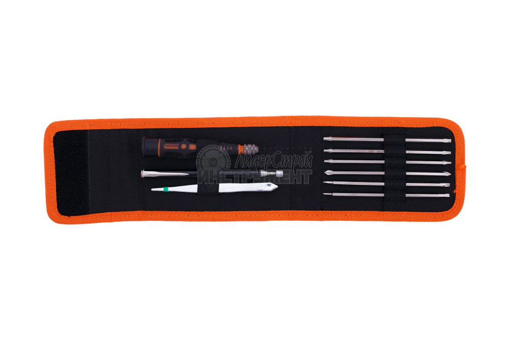 Набор инструментов из 12 предметов. В комплект входят длинногубцы, отвертка-тестер, пассатижи, молоток слесарный 200 г, отвертки SL 6 х 150 мм, РН 2 х 150 мм, две часовые отвертки: 2 х 50 мм, РН 00 х 50 мм; кусачки мини, ключ разводной, нож технический 18 мм, рулетка 3 м х 13 мм.