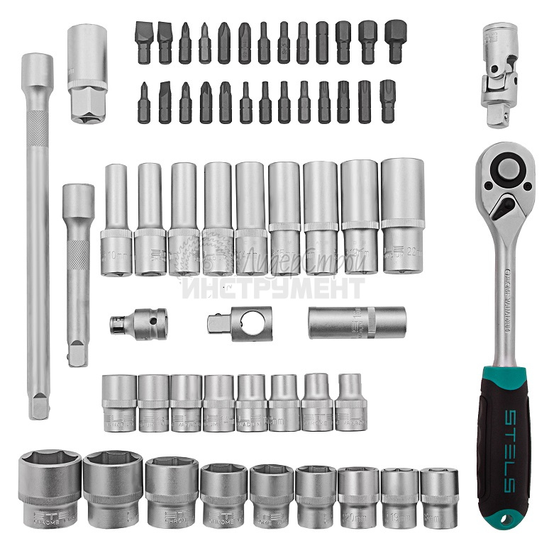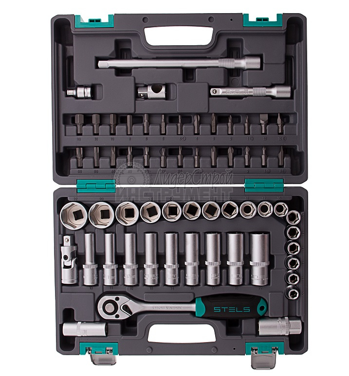 Наборы инструмента торговой марки STELS разработаны специально для автолюбителей и центров технического обслуживания. Каждый этап производства контролируется в соответствии с международными стандартами. Головки и комбинированные ключи изготовлены из хромованадиевой стали, придающей инструменту исключительную твердость в сочетании с легкостью. Биты, биты-вставки и отвёртки производятся из стали S2, улучшающей свойства инструмента. Все наборы упакованы в кейс, изготовленный из жесткого противоударного пластика, с металлическими застёжками. Наборы инструмента STELS пригодятся вам не только в автомобиле. С их помощью можно проводить бытовой ремонт дома и на даче, ремонт бытовых конструкций и садовой техники. На все наборы инструментов STELS предоставляется пожизненная гарантия (подробнее об условиях гарантии вы можете узнать из гарантийного талона).