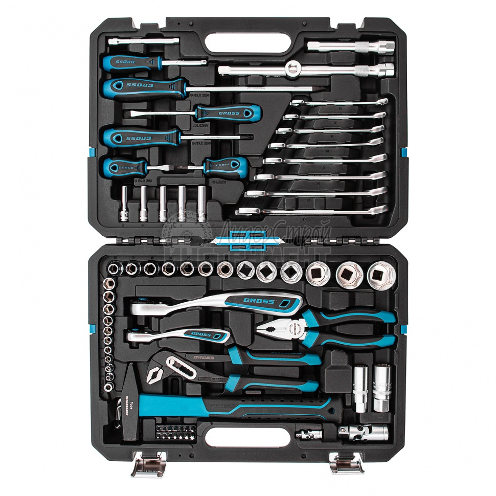 Набор инструментов Gross 14155, 1/4 и 1/2 дюйма, CrV, включает 109 предметов, в том числе ключи-трещотки со 120 зубьями, и предназначен для работы в гараже, а также домашнего ремонта. В комплекте инструменты для монтажа и демонтажа резьбовых соединений. Вороток, удлинители и карданные шарниры облегчают манипуляции в стесненных условиях. Для хранения и транспортировки предусмотрен кейс из ударопрочного пластика с надежными металлическими замками.