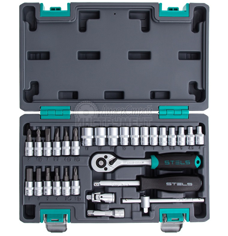 Наборы инструмента торговой марки STELS разработаны специально для автолюбителей и центров технического обслуживания. Каждый этап производства контролируется в соответствии с международными стандартами. Головки и комбинированные ключи изготовлены из хромованадиевой стали, придающей инструменту исключительную твердость в сочетании с легкостью. Биты, биты-вставки и отвёртки производятся из стали S2, улучшающей свойства инструмента. Все наборы упакованы в кейс, изготовленный из жесткого противоударного пластика, с металлическими застёжками. Наборы инструмента STELS пригодятся вам не только в автомобиле. С их помощью можно проводить бытовой ремонт дома и на даче, ремонт бытовых конструкций и садовой техники. На все наборы инструментов STELS предоставляется пожизненная гарантия (подробнее об условиях гарантии вы можете узнать из гарантийного талона).