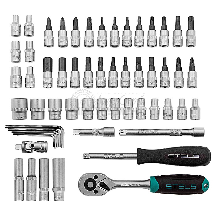 Наборы инструмента торговой марки STELS разработаны специально для автолюбителей и центров технического обслуживания. Каждый этап производства контролируется в соответствии с международными стандартами. Головки и комбинированные ключи изготовлены из хромованадиевой стали, придающей инструменту исключительную твердость в сочетании с легкостью. Биты, биты-вставки и отвёртки производятся из стали S2, улучшающей свойства инструмента. Все наборы упакованы в кейс, изготовленный из жесткого противоударного пластика, с металлическими застёжками. Наборы инструмента STELS пригодятся вам не только в автомобиле. С их помощью можно проводить бытовой ремонт дома и на даче, ремонт бытовых конструкций и садовой техники. На все наборы инструментов STELS предоставляется пожизненная гарантия (подробнее об условиях гарантии вы можете узнать из гарантийного талона).