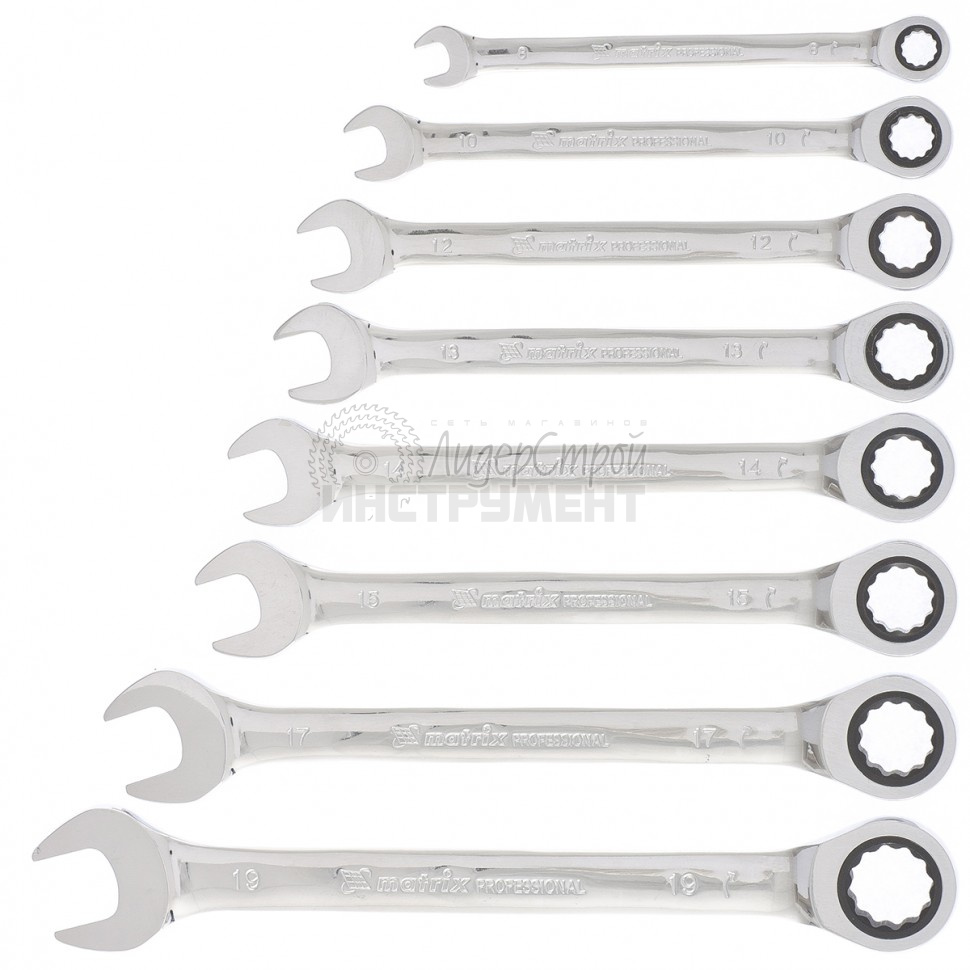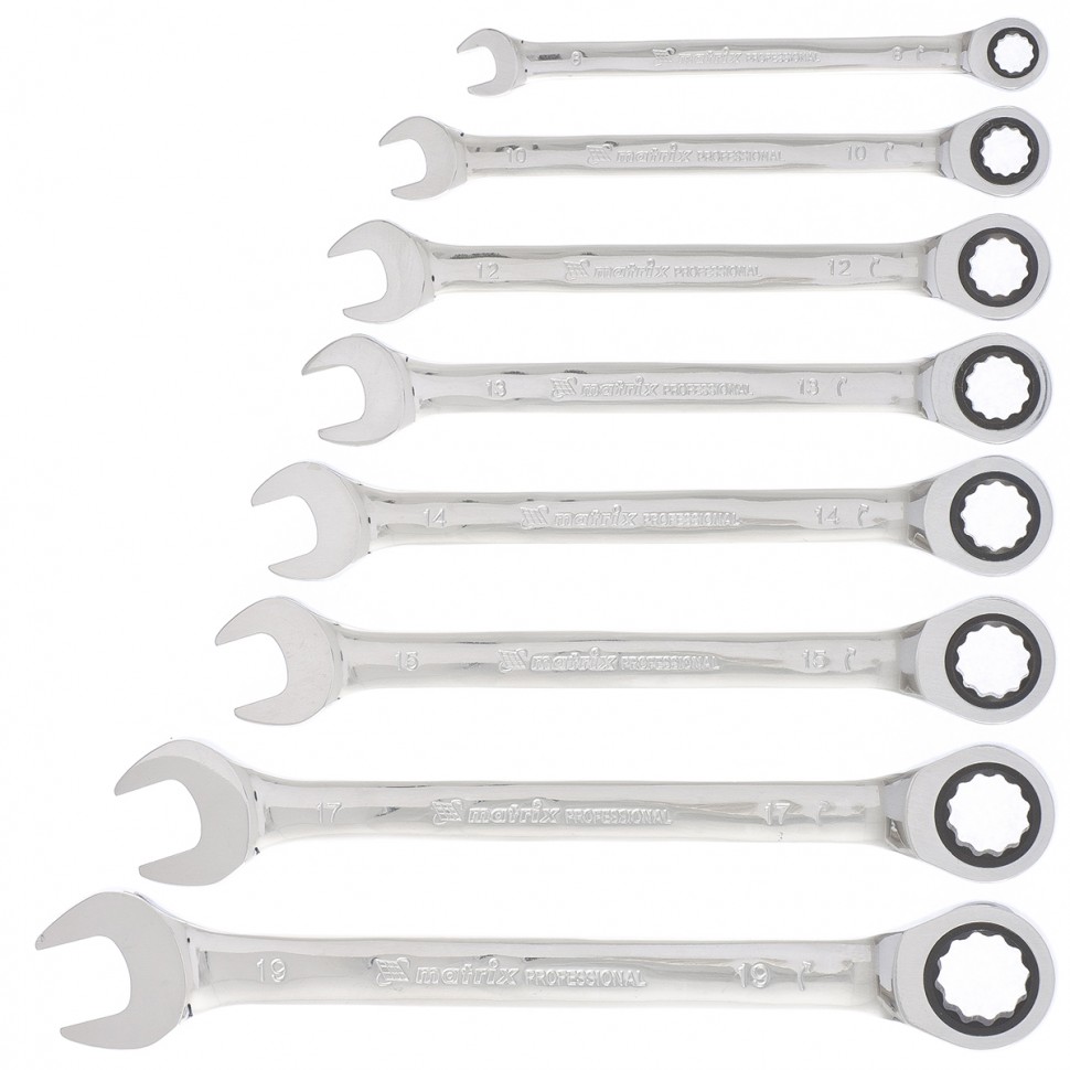 Набор ключей комбинированных трещоточных 8-19мм 8шт MATRIX 14513 14513 купить по цене 2 207 руб - интернет-магазин ЛидерСтройИнструмент