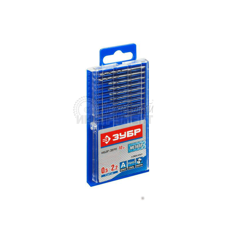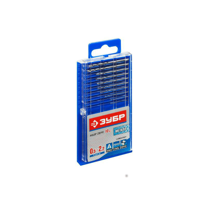 Набор сверл по металлу 0,5-2,2мм класс А Р6М5 10шт ЗУБР Профи 4-29625-H10-P (отзывы)
