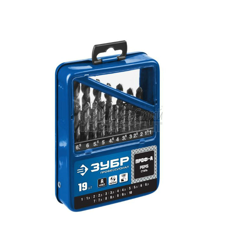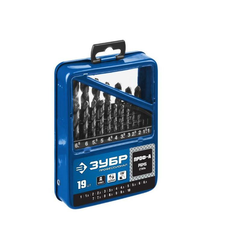 Набор сверл по металлу 1-10мм класс А Р6М5 19шт ЗУБР Профи 29625-H19 купить по цене 3 530 руб - интернет-магазин ЛидерСтройИнструмент