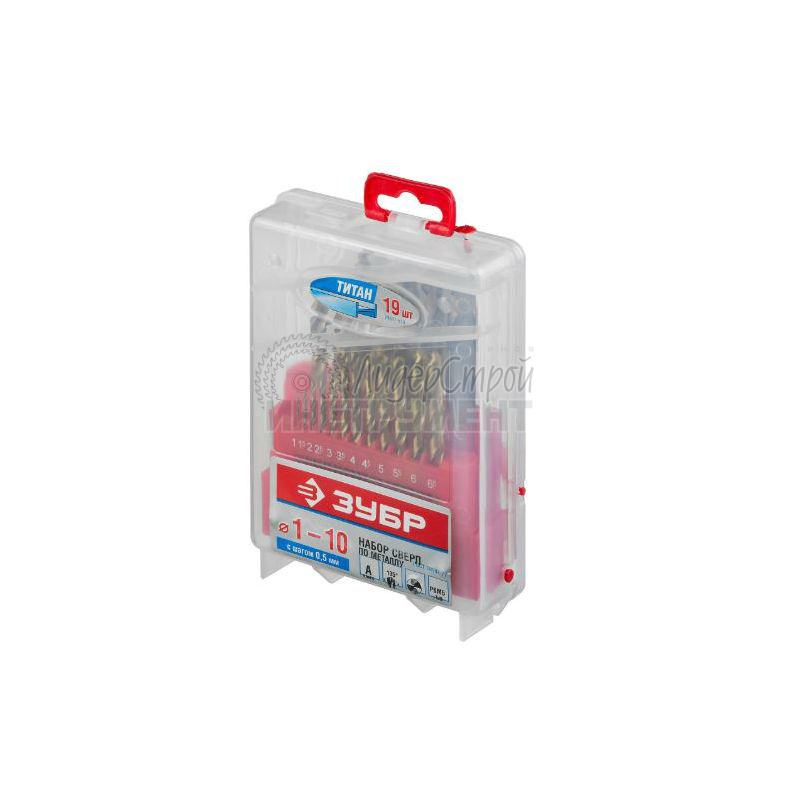 Набор сверл по металлу 1-10мм нитрид титан класс А Р6М5 19шт ЗУБР Профи