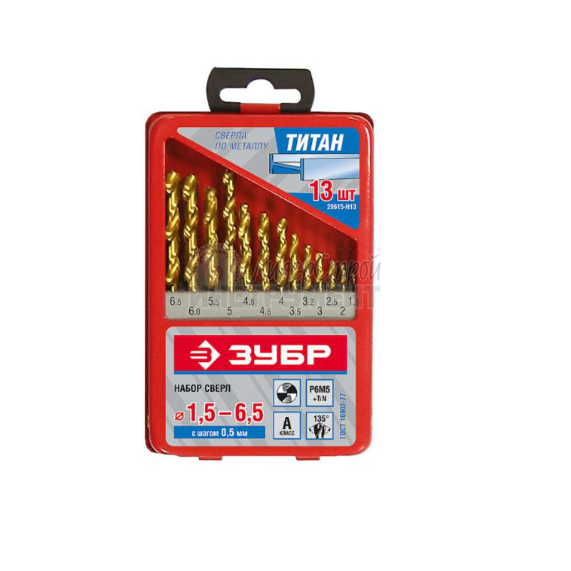 Набор сверл по металлу 1,5-6,5мм нитрид титан класс А Р6М5 13шт ЗУБР Профи 29615-H13_z01 купить по цене 1 440 руб - интернет-магазин ЛидерСтройИнструмент