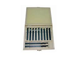 Набор резцов для токарных станков с напаянной пластиной из твердого сплава, сечение10х10 мм, количество резцов в наборе 11 штук.