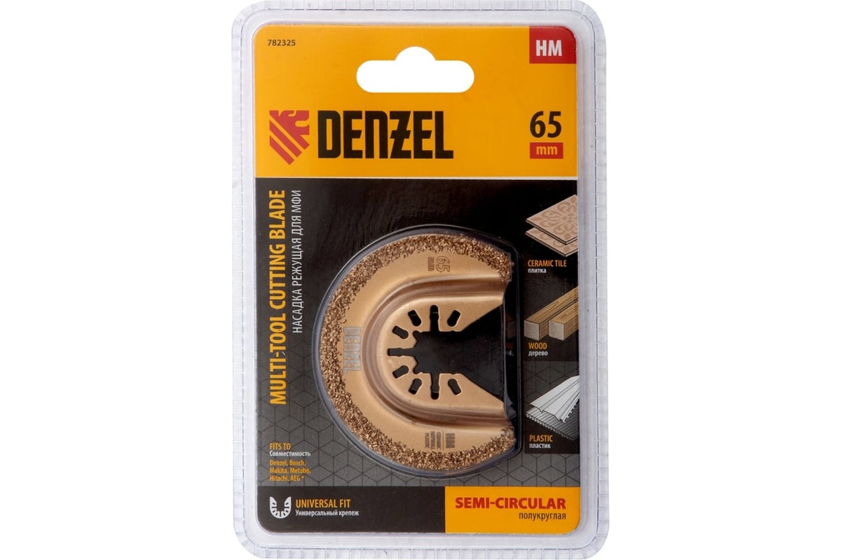 Режущая полукруглая насадка для МФИ по плитке и дереву Denzel 782325, 65 мм, сталь HM, позволяет осуществить шлифование поверхностей. Она находит подходит для обработки мягкой плитки, керамики, древесины, зачистки швов и т.д. Благодаря повышенному содержанию марганца в составе насадка рассчитана на повышенные механические нагрузки, что позволяет решать профессиональные задачи.