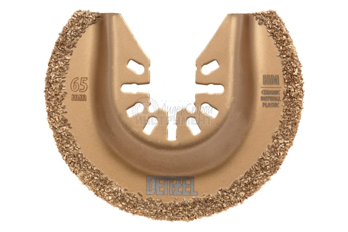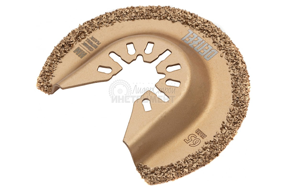 Режущая полукруглая насадка для МФИ по плитке и дереву Denzel 782325, 65 мм, сталь HM, позволяет осуществить шлифование поверхностей. Она находит подходит для обработки мягкой плитки, керамики, древесины, зачистки швов и т.д. Благодаря повышенному содержанию марганца в составе насадка рассчитана на повышенные механические нагрузки, что позволяет решать профессиональные задачи.