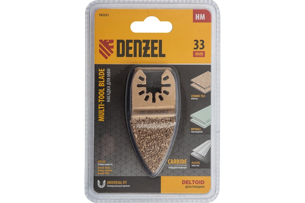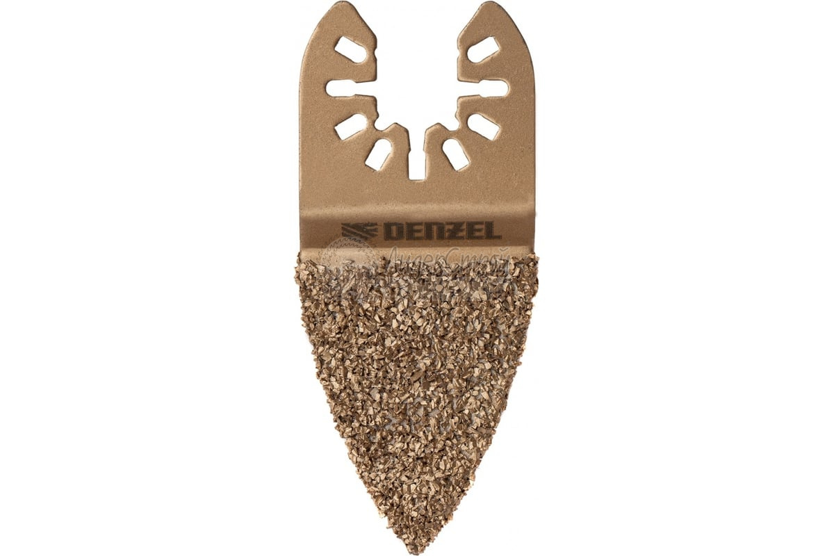 Шлифовальная дельтовидная насадка для МФИ Denzel 782321, 33 мм, из стали HM, пригодится при проведении шлифовальных работ по плитке, дереву, кирпичу и камню. С ее помощью можно подготовить поверхности к последующей отделке: удалить раствор и клей из плиточных швов, снять фаски и заусенцы и др. Насадка подходит для профессионального применения, т.к. рассчитана на интенсивные механические нагрузки за счет повышенного содержания марганца в составе стали.