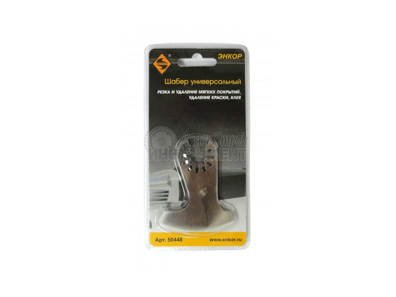 Энкор арт. 50448 ‒ насадка (шабер) для универсальных машин МФЭ-260/400Э. Служит для разных работ по мягким материалам. С помощью такой насадки вы сможете удалить старую краску, клей, разрезать покрытие и т.д. Является универсальной, что позволяет крепить насадку к инструменту других производителей.