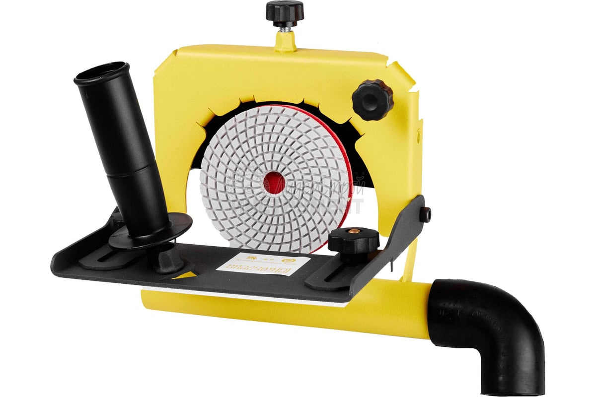 - Вес УШМ переносится на упор насадки, разгружая руки и делая работу легче.