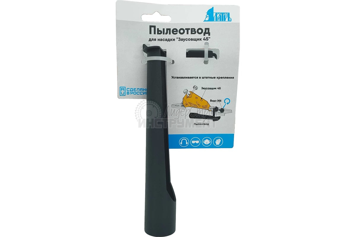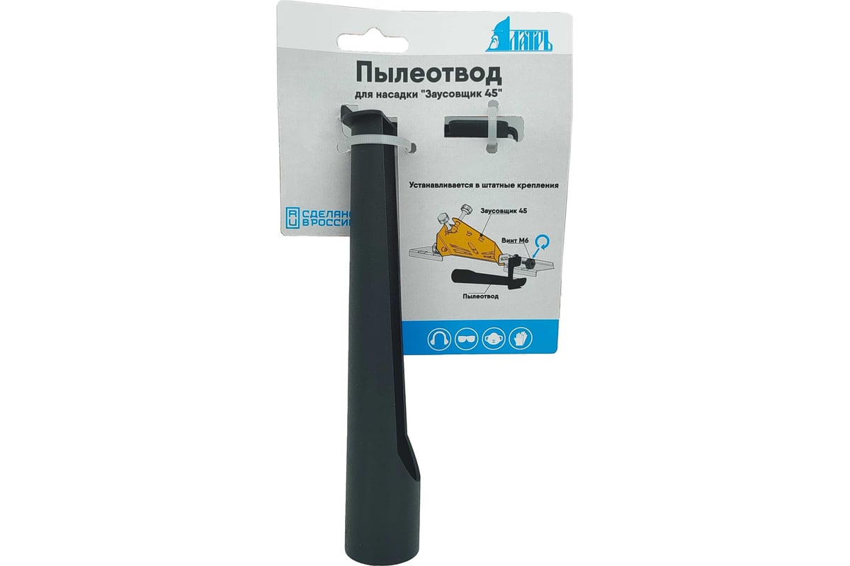 Пылеудалитель совместим с насадкой на УШМ для резки под 45 градусов «Заусовщик 45» (артикул 44976).Устанавливается в штатные крепления на насадке, никакой доработки не требуется.