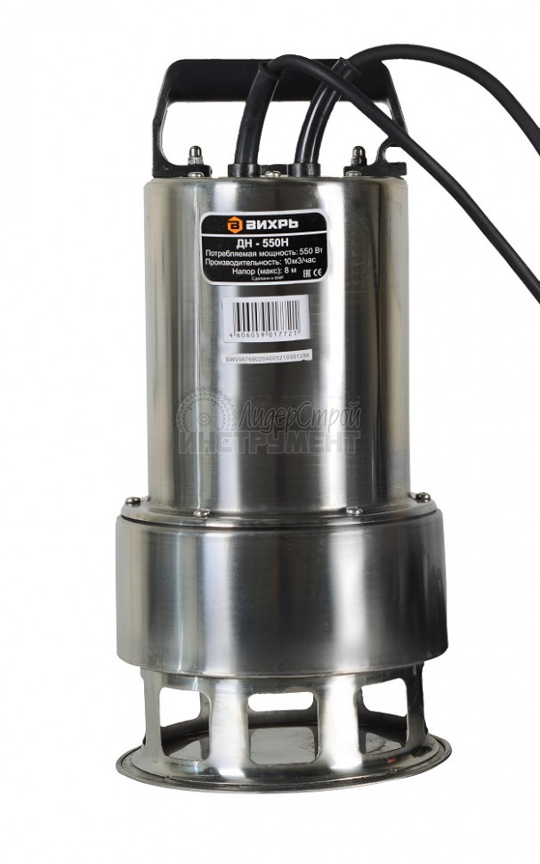 Насос обладает высокой производительностью. Корпус насоса выполнен из нержавеющей стали и чугуна. Рабочее колесо выполнено из чугуна, обладает высокими коррозийными свойствами. За счет своей большой массы устойчиво стоит на дне колодца, отлично тонет в выгребной яме.