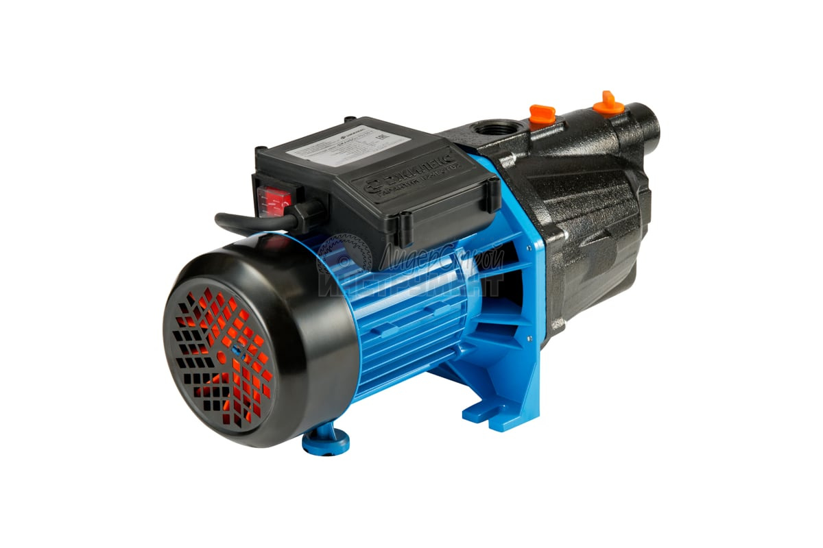 Мощности двигателя (370 Вт) достаточно для выкачивания до 2700 литров в час. В аппарат встроен эжектор с системой труб «Вентури», который позволяет повысить глубину всасывания и силу напора. Внутренний механизм устройства защищен от любых повреждений чугунным корпусом. Отдельное водозаливное отверстие упрощает процесс эксплуатации.