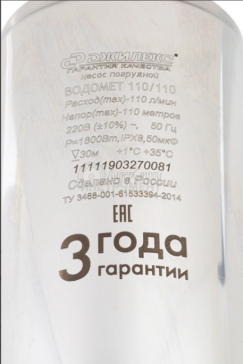 Допустимая температура перекачиваемой воды — до +35ºС.