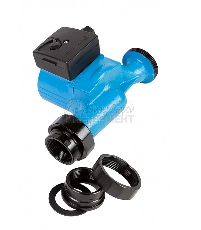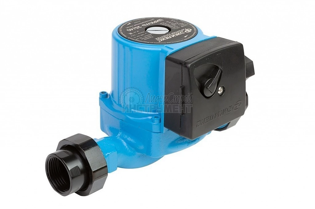 Присоединительный размер гаек — 1 дюйм (25 мм). Максимальный напор достигает 4,6 метров водяного столба, а расход теплоносителя доходит до 55 л/мин.