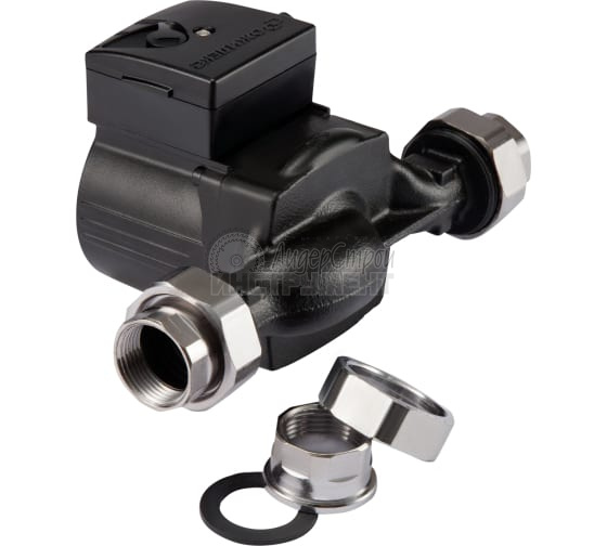 Присоединительный размер гаек — 1 дюйм (25 мм). Максимальный напор достигает 6,2 метров водяного столба, а расход теплоносителя доходит до 70 л/мин.