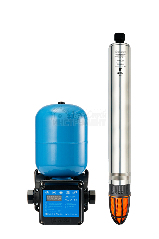В системе установлен насос, который обладает максимальным расходом 55 литров в минуту и максимальным напором 75 метров. Он способен перекачивать воду с содержанием песка во взвешенном состоянии до 2 килограмм на кубический метр воды. Электродвигатель насоса надежно защищен от перегрева потоком омывающей воды, что позволяет насосу работать не полностью погруженным в воду.