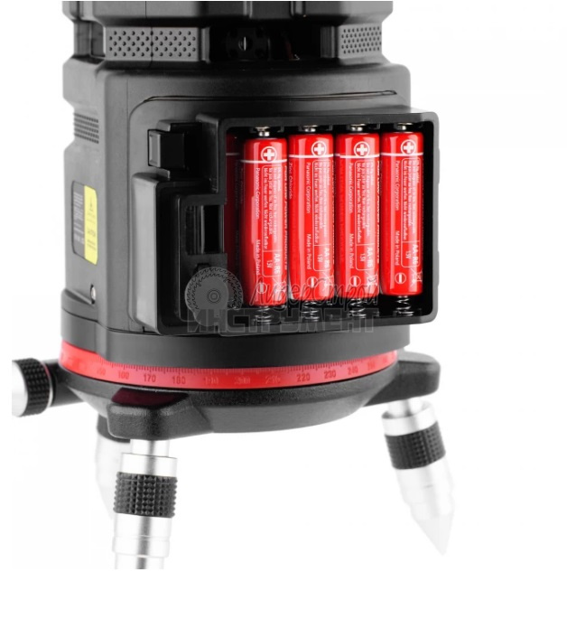 Лазерный уровень так же оснащен индикатором низкого заряда батарей. Контрольная лампочка загорается и подается предупреждающий звуковой сигнал в случае низкого заряда батарей.