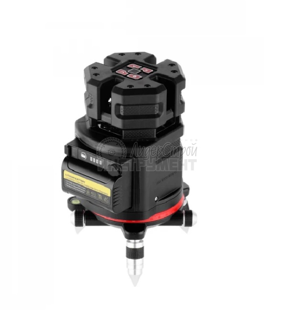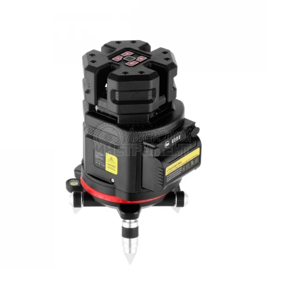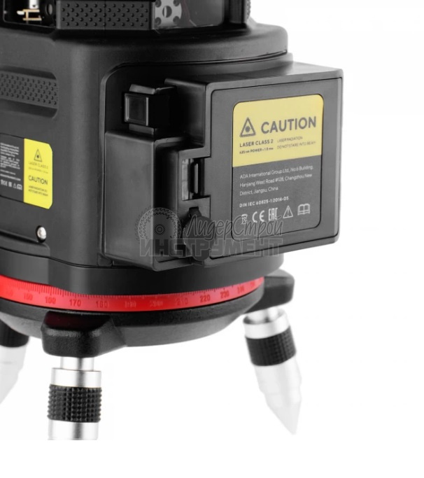В основании корпуса расположена поворотная часть для плавного и точного наведения вертикальных линий. Ручкой плавной подстройки прибор поворачивается вправо-влево на 360° вокруг своей оси. Наведение на нужную точку точное и простое.